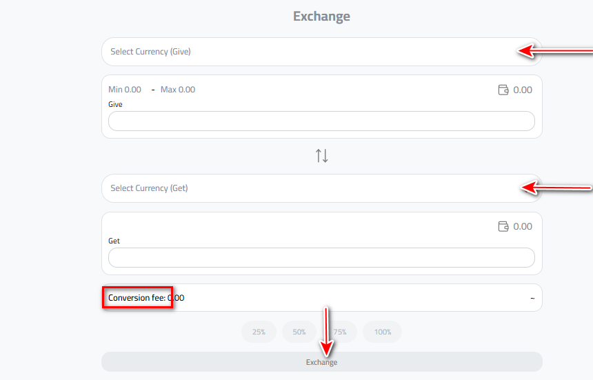 In order to perform a successful exchange between your digital currencies and get the best real-time exchange rates, please follow these steps: